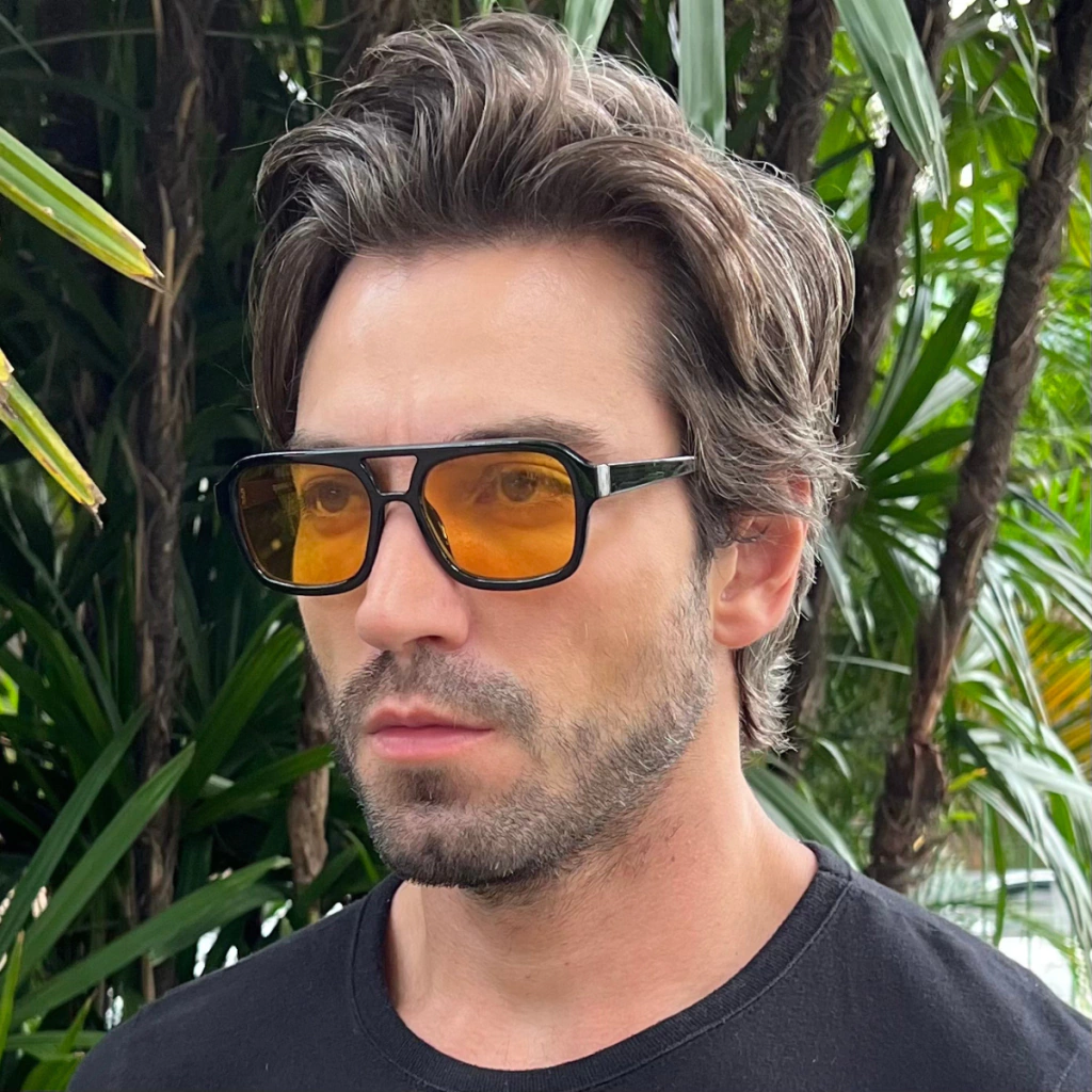 Em armação de acetato italiano de alta qualidade. Nossos óculos são protegidos contra descascamento provocado por suor e água.